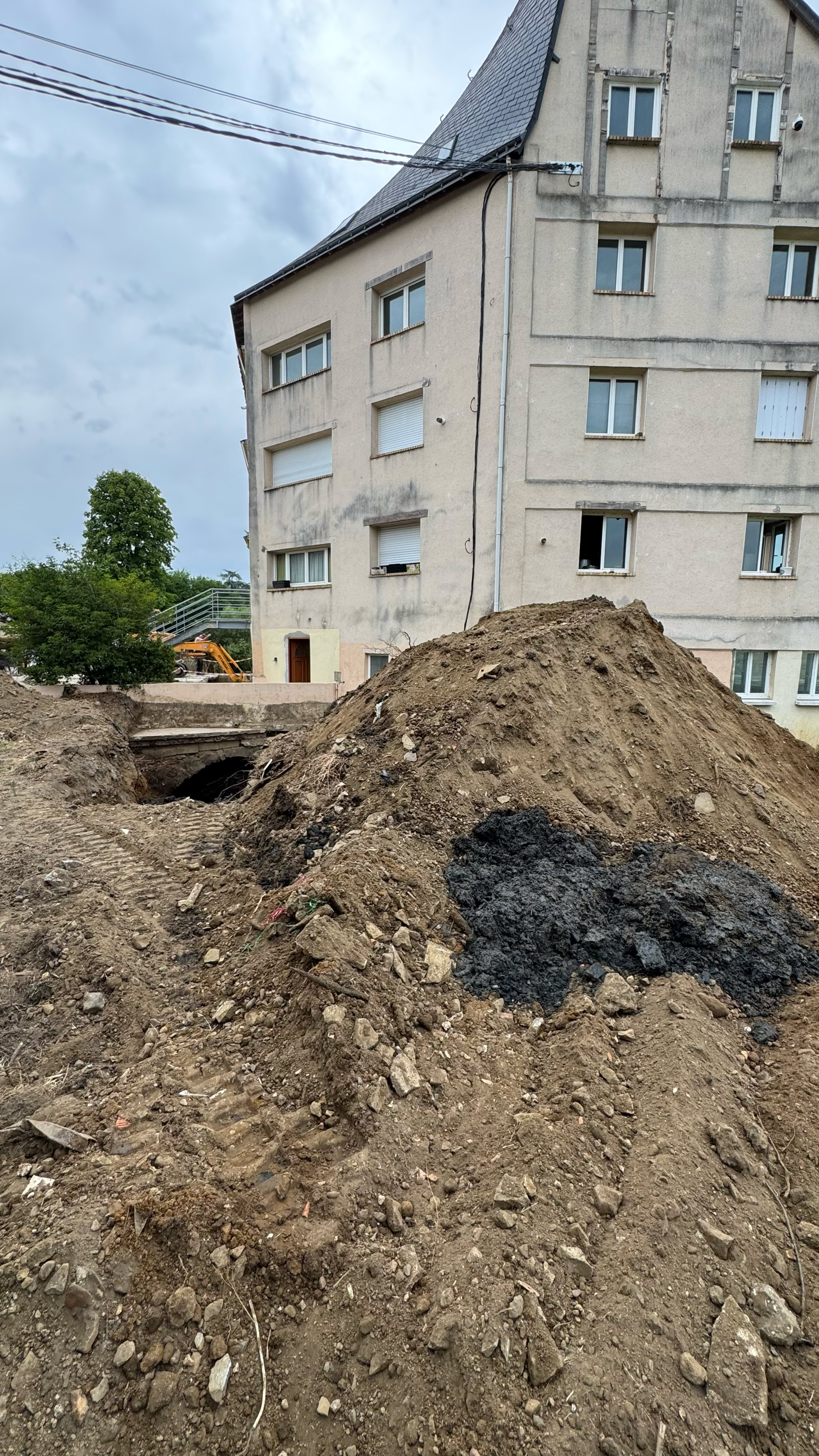 Au mi-juillet 2025 voici ce qu’il reste du mur. Encore 25% à enlever en vidant l’eau qui reste car avec le 220 Volts ça ne fait pas bon ménage.