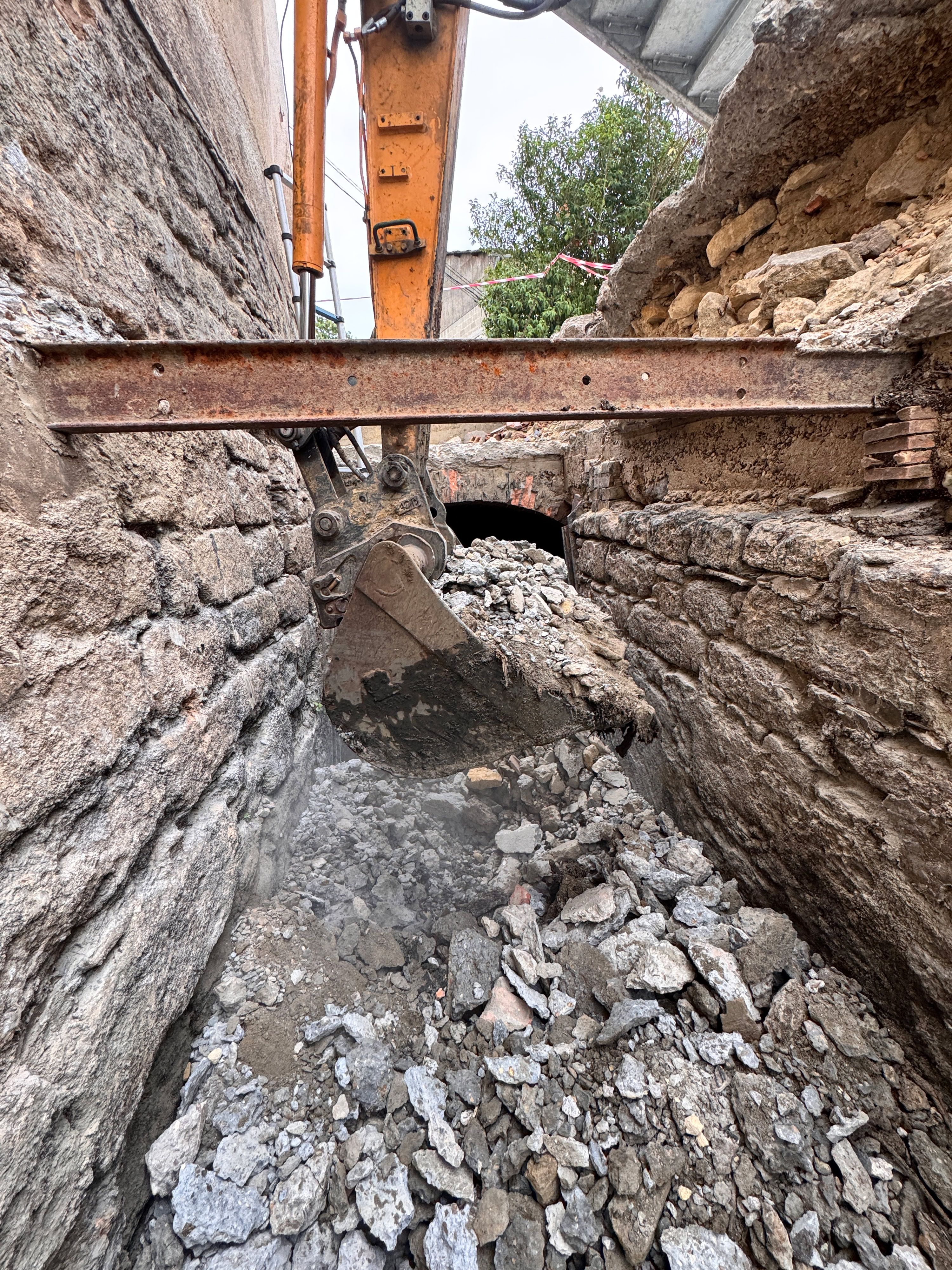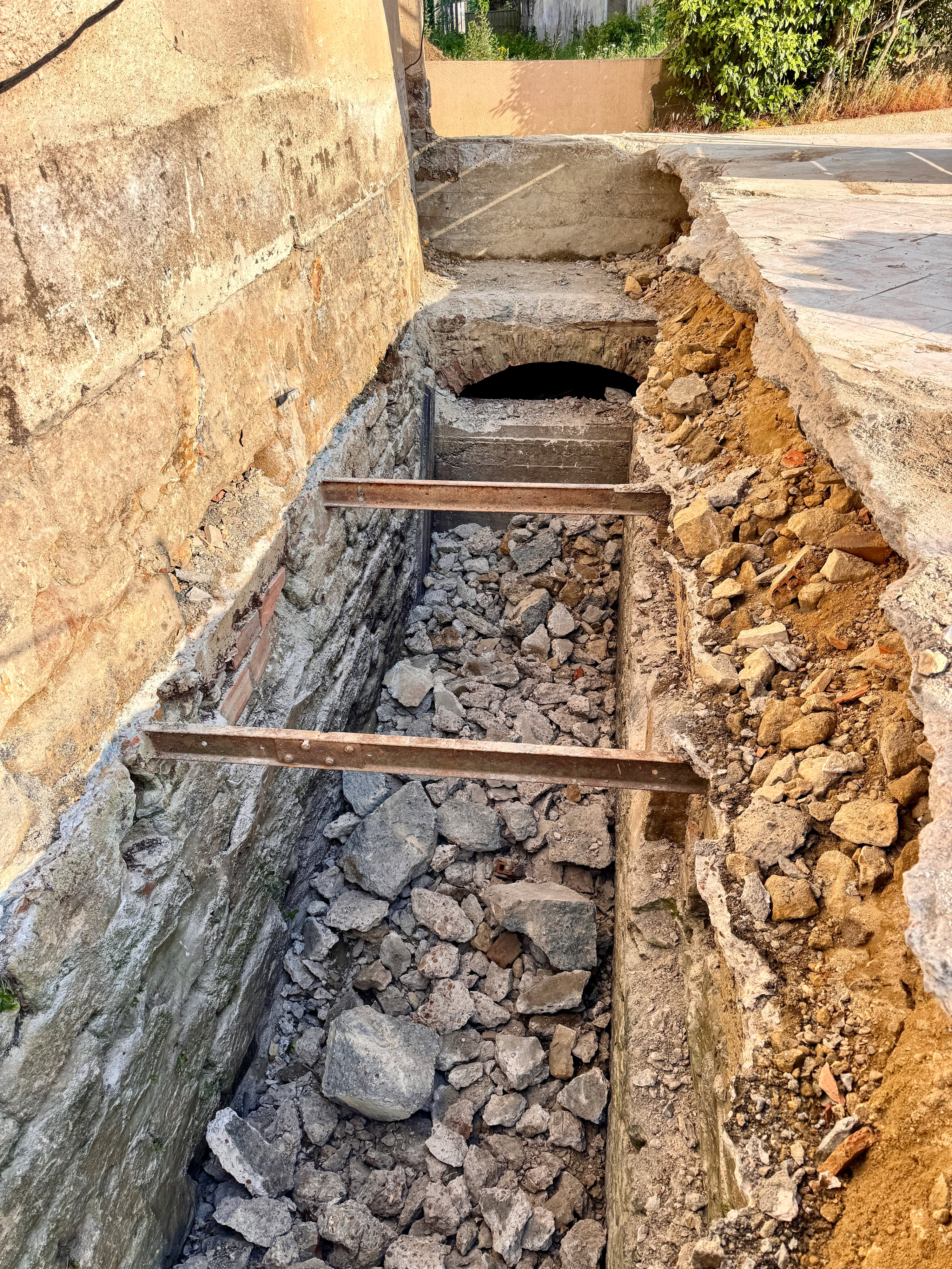 En pensant trouver directement le coursier sous la dalle, grosse surprise : des gravats et une autre dalle. Je savais qu’elle devait être épaisse mais nous ne pensions pas y trouver autant de gravats.