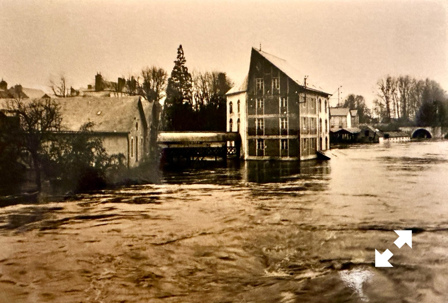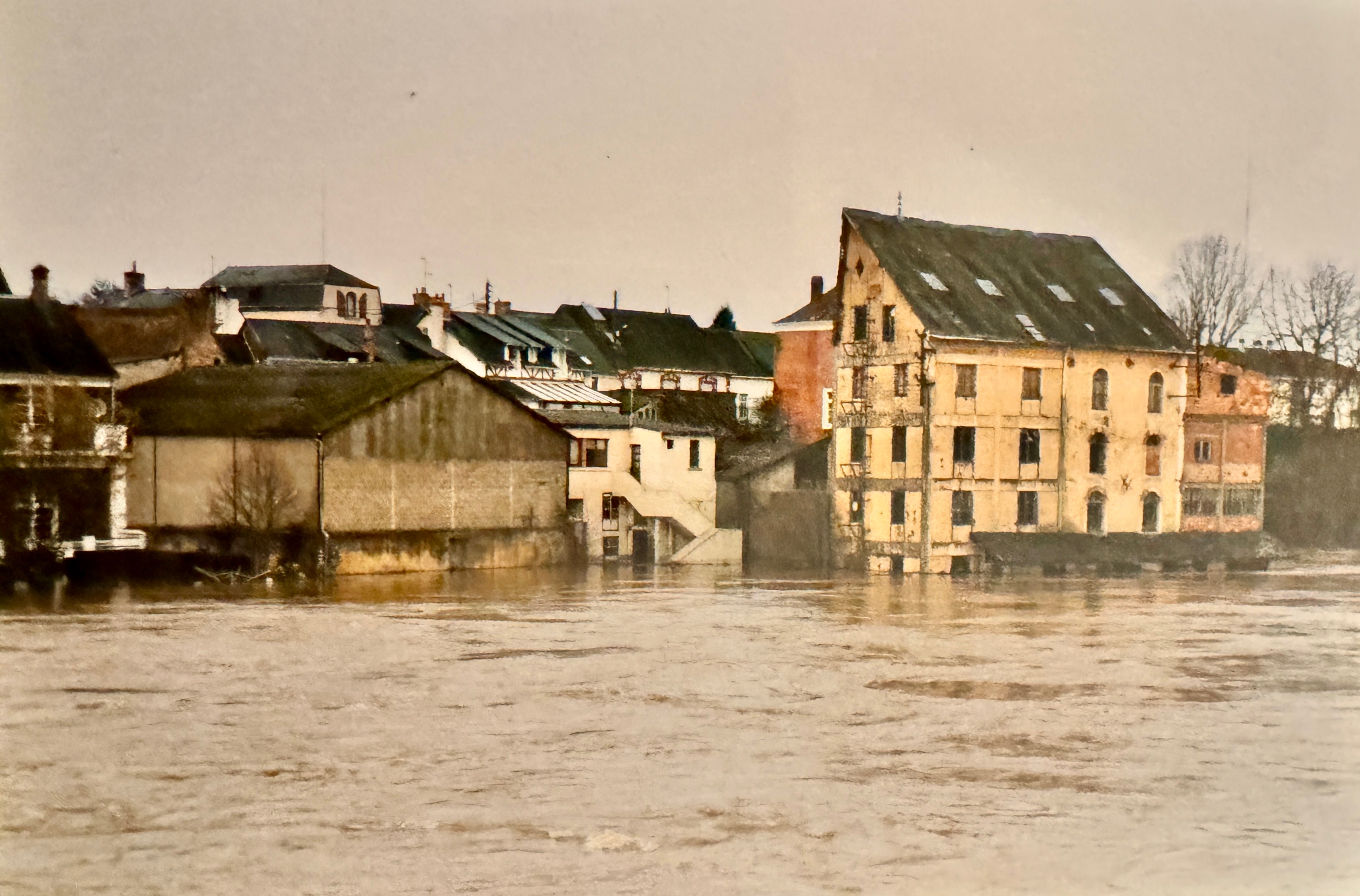 Novembre 1930 des crues dévastatrices. Les mesures officielles n’existent pas encore et il est donc impossible de connaitre une hauteur d’eau reconnue. Cependant si on se réfère aux ponts ou aux bâtiments, on s’aperçoit qu’elles étaient un peu plus hautes que celles de 1995.