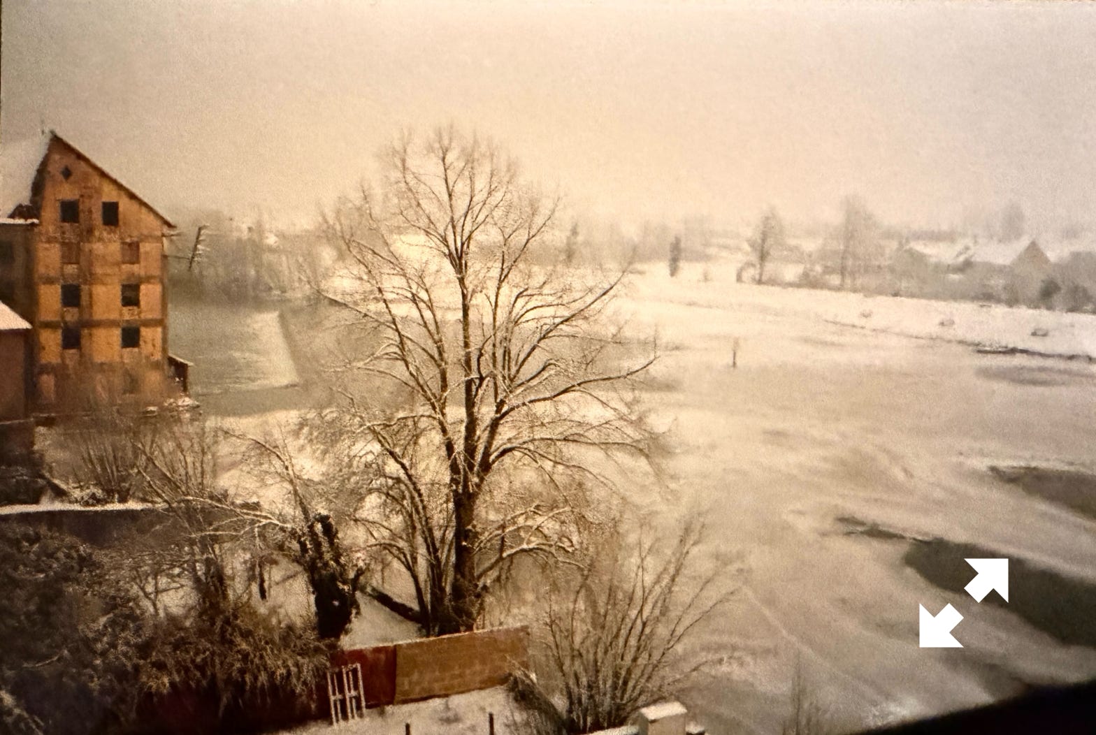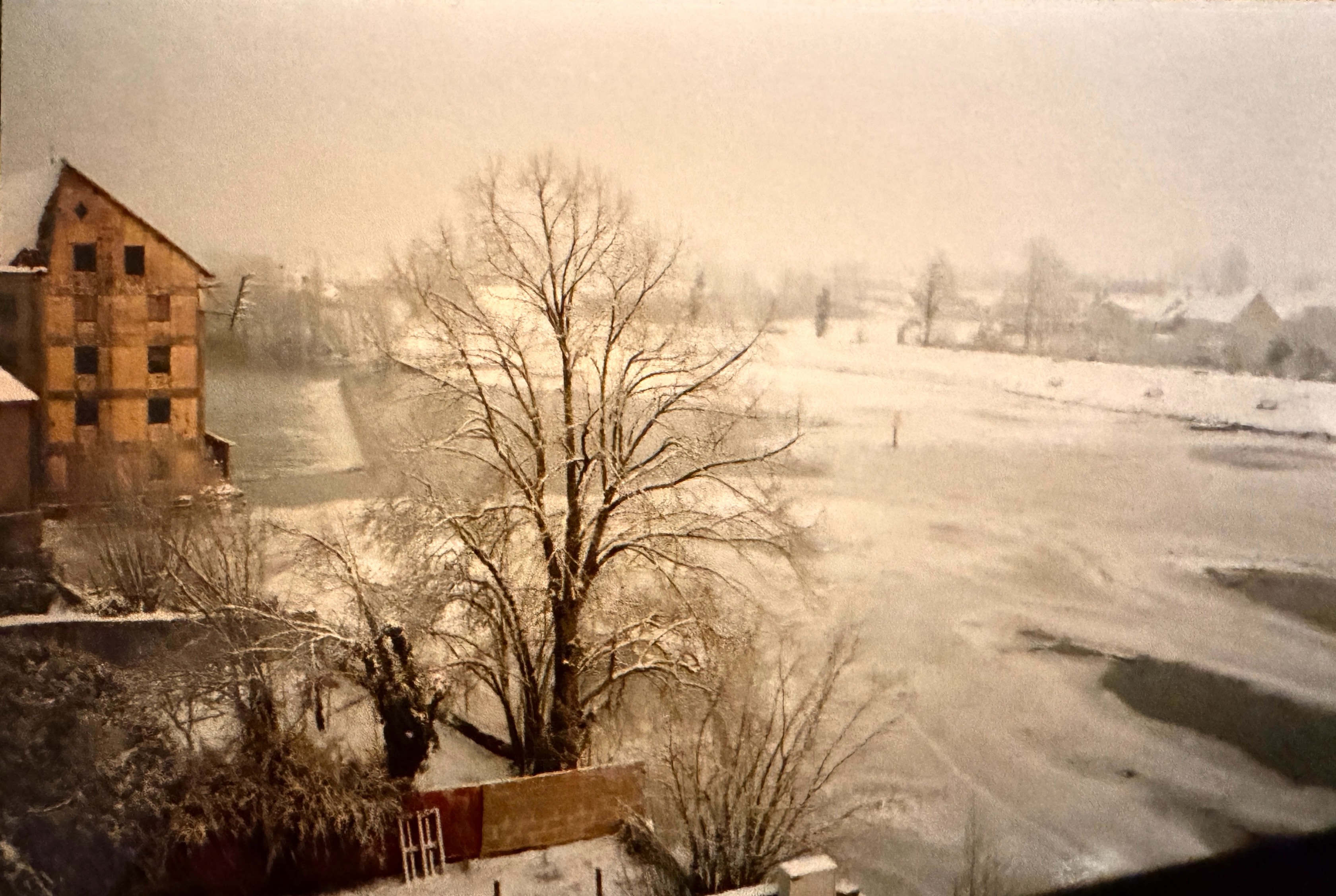 Le moulin les pieds dans l’eau à l’état d’abandon en janvier 1995.