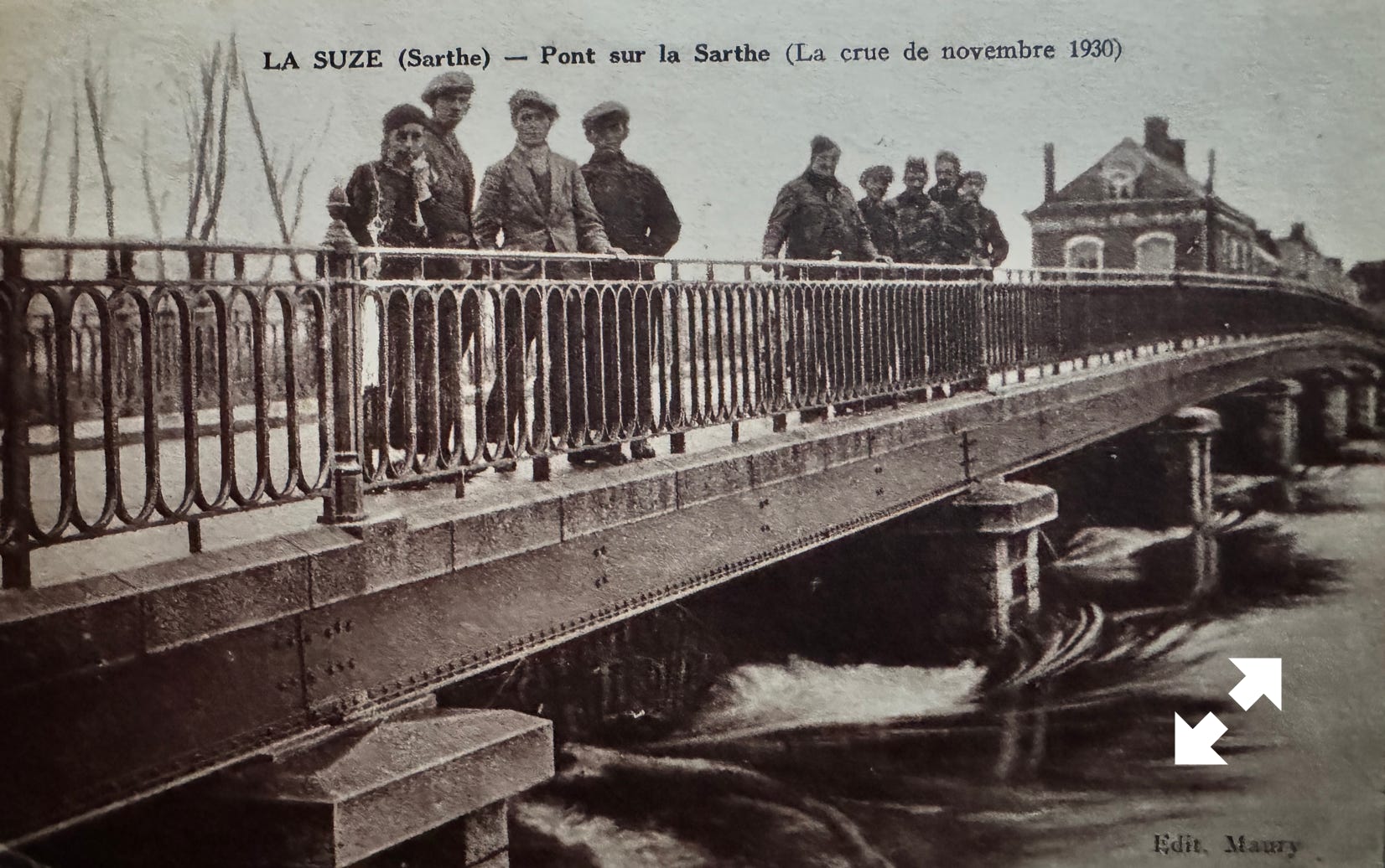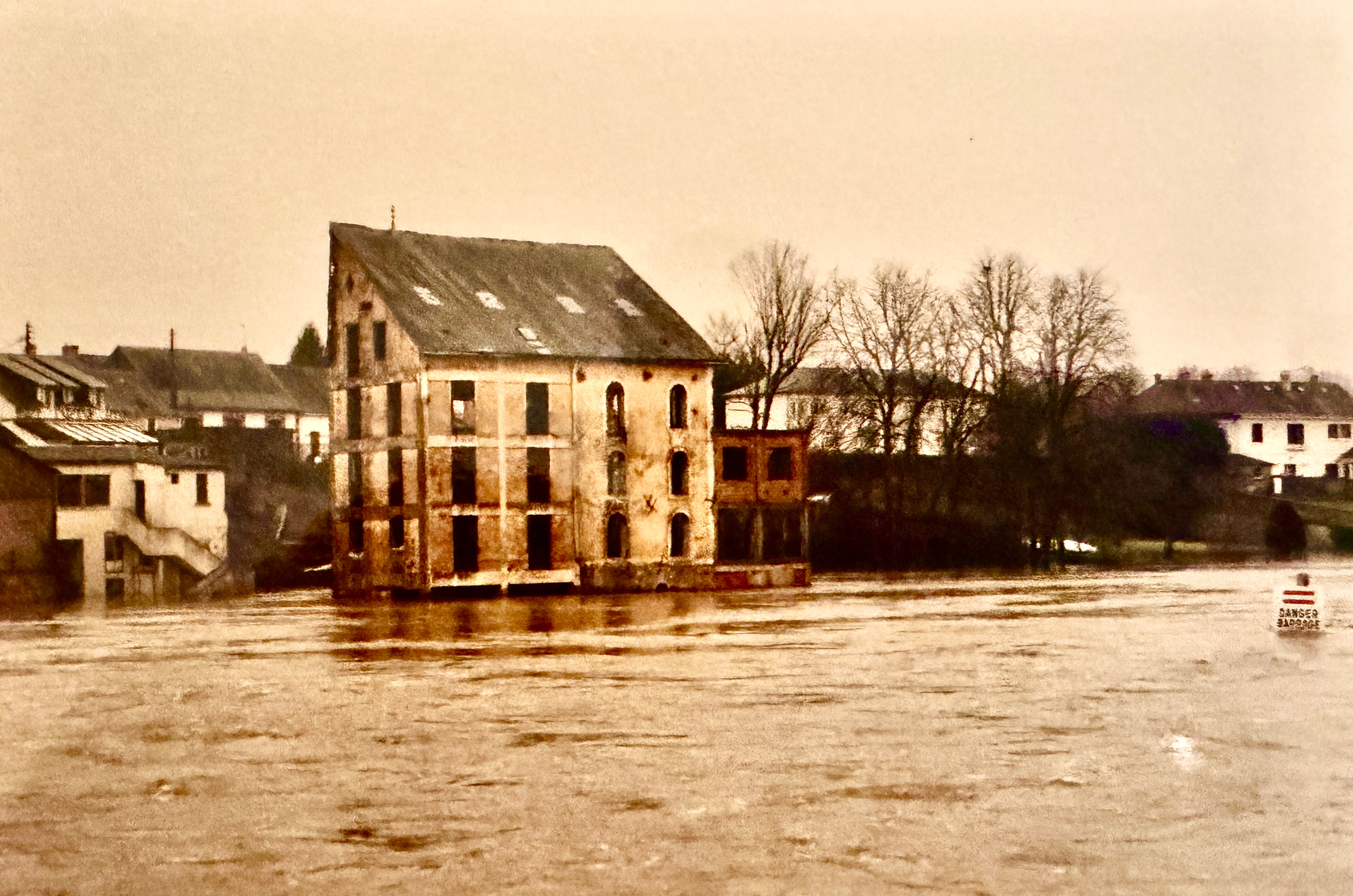 Novembre 1930 des crues dévastatrices. Les mesures officielles n’existent pas encore et il est donc impossible de connaitre une hauteur d’eau reconnue. Cependant si on se réfère aux ponts ou aux bâtiments, on s’aperçoit qu’elles étaient un peu plus hautes que celles de 1995.