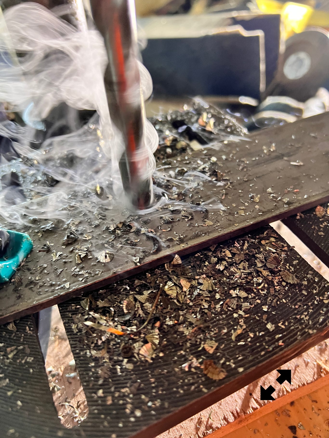 Perçage de l’Inox nécessaire au pincement du bas de la vanne