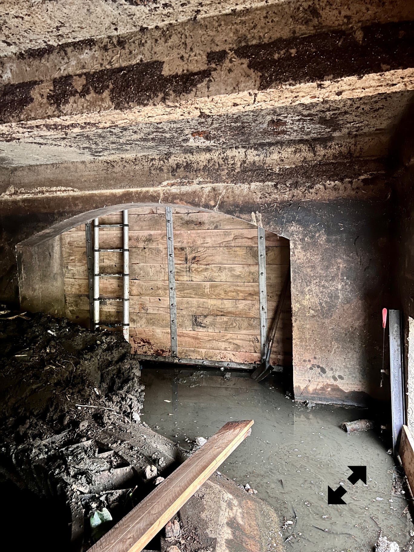 Nous sommes Juin 2025 l’eau et les crues de 2024 ont bien fait la majeur partie du travail. Il reste un peu de vase dans le font à droite où les turbulences sont moins fortes. Je terminerai le travail à la main durant les prochaines écourues. Notons que la puissance des crues de l’an passé on détruit les planches en pin. Elles seront elles aussi remplacées cet été.