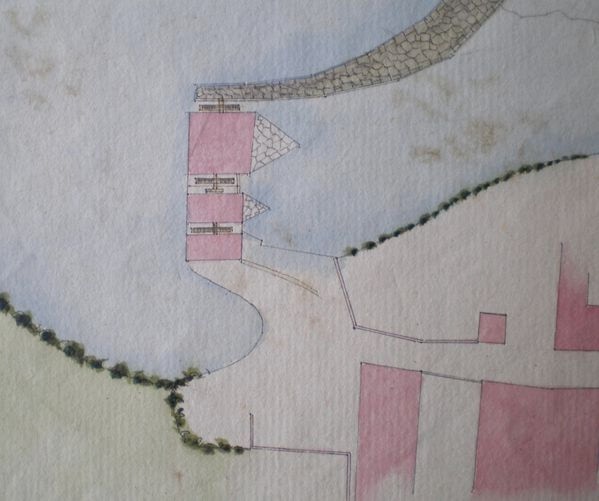 4° Aucune roue, aucune construction dépendante de l’usine ne pourra être établie en saillie sur une ligne montée ( ?) parallèlement à l’axe du canal de dérivation dont la construction est approuvée pour le barrage de La Suze, à quatre vingt douze mètres ? ? ? ? de distance de ces axes